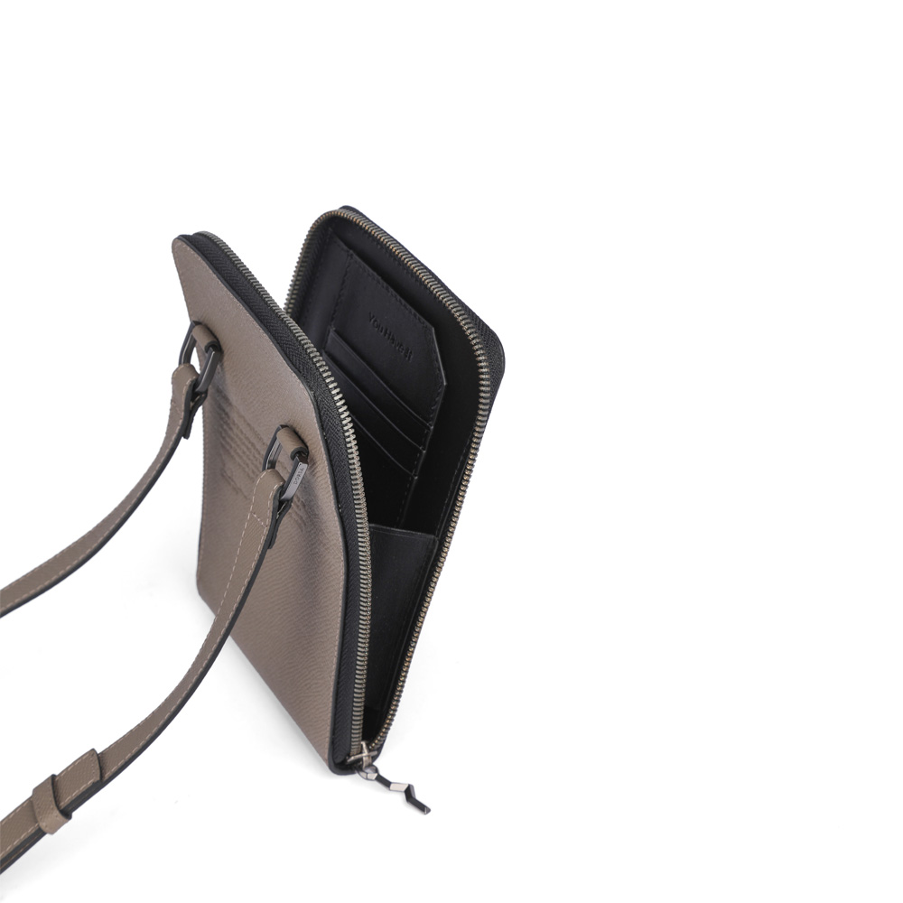 طراحی این کیف با لوگوی منحصر به فرد کتیبه دال و نوشته ی ظریف کنار آن، با ظاهر خاصی که به کیف داده است، به استایل شما شخصیت و تمایز می بخشد. این کیفی کوچک و مدرن با طراحی مینیمال است که فضای داخلی آن با دقت برای قرار دادن وسایل ضروری روزانه ارگانایز شده است تا همه چیز بهآسانی در دسترس باشد. نحوه باز و بسته شدن کیف امکان دسترسی سریع و آسان به وسایل را حتی در حال حرکت ممکن کرده است. با بند قابل تنظیم خود، قابلیت حمل بهصورت دوشی یا مورب جلوی بدن را دارد و راحتی و انعطاف را در هر لحظه فراهم میکند.