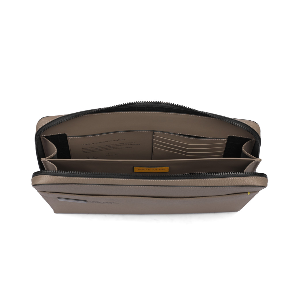 طراحی این کیف با لوگوی منحصر به فرد کتیبه دال و نوشته ی ظریف کنار آن، با ظاهر خاصی که به کیف داده است، به استایل شما شخصیت و تمایز می بخشد. این کیف با طراحی مینیمالیستی و دوخت طراحی شده در قسمت پشت، انتخابی بینقص برای یک استایل مدرن در جلسات کاری و استفاده روزمره است. ساختار جادار تقسیم بندی شده ی آن، فضای کافی برای حمل مدارک و وسایل ضروری را فراهم میآورد و به راحتی میتوان آن را به صورت دستی توسط بند یا زیر بازو حمل کرد. جلوهی حرفهای و کاربردی این کیف، استایل شما را تکمیل کرده و برای افرادی که به دنبال ترکیب ظاهری مدرن و عملکردی عالی هستند، ایدهآل است.
