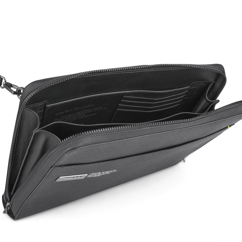 طراحی این کیف با لوگوی منحصر به فرد کتیبه دال و نوشته ی ظریف کنار آن، با ظاهر خاصی که به کیف داده است، به استایل شما شخصیت و تمایز می بخشد. این کیف با طراحی مینیمالیستی و دوخت طراحی شده در قسمت پشت، انتخابی بینقص برای یک استایل مدرن در جلسات کاری و استفاده روزمره است. ساختار جادار تقسیم بندی شده ی آن، فضای کافی برای حمل مدارک و وسایل ضروری را فراهم میآورد و به راحتی میتوان آن را به صورت دستی توسط بند یا زیر بازو حمل کرد. جلوهی حرفهای و کاربردی این کیف، استایل شما را تکمیل کرده و برای افرادی که به دنبال ترکیب ظاهری مدرن و عملکردی عالی هستند، ایدهآل است.
