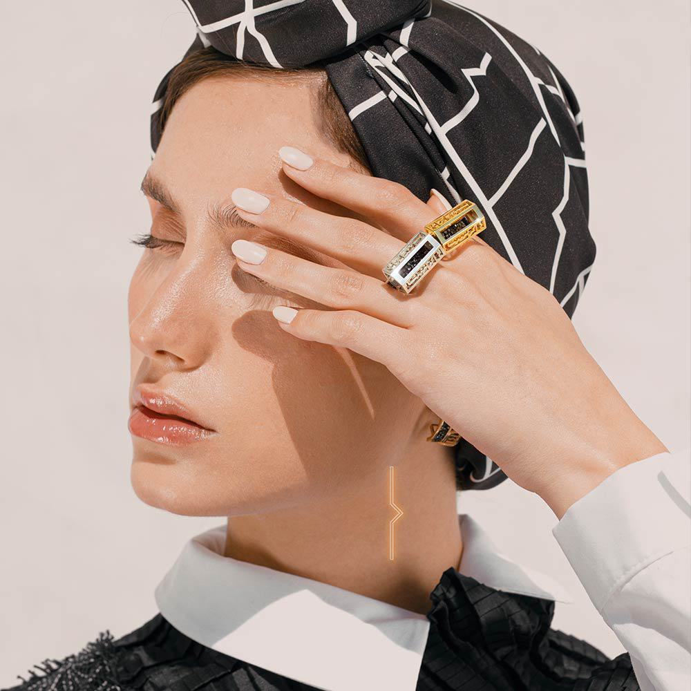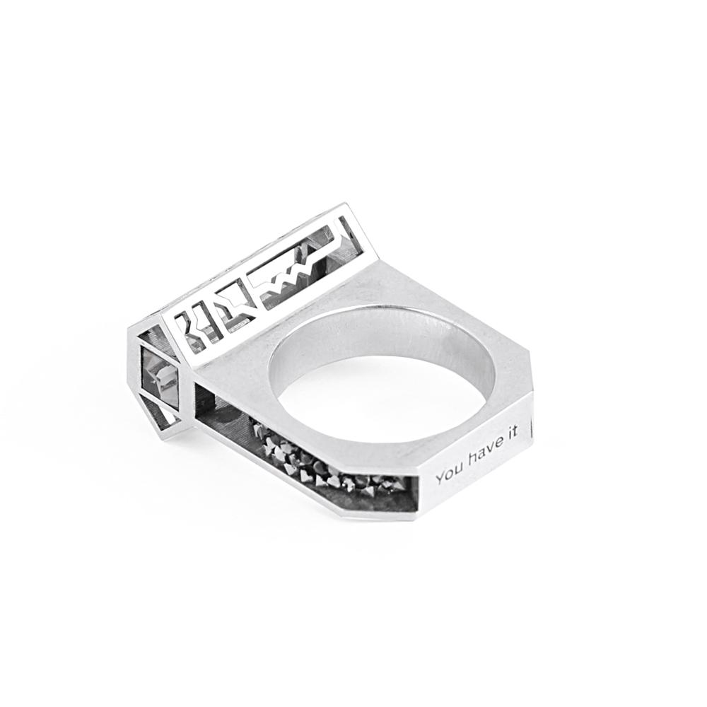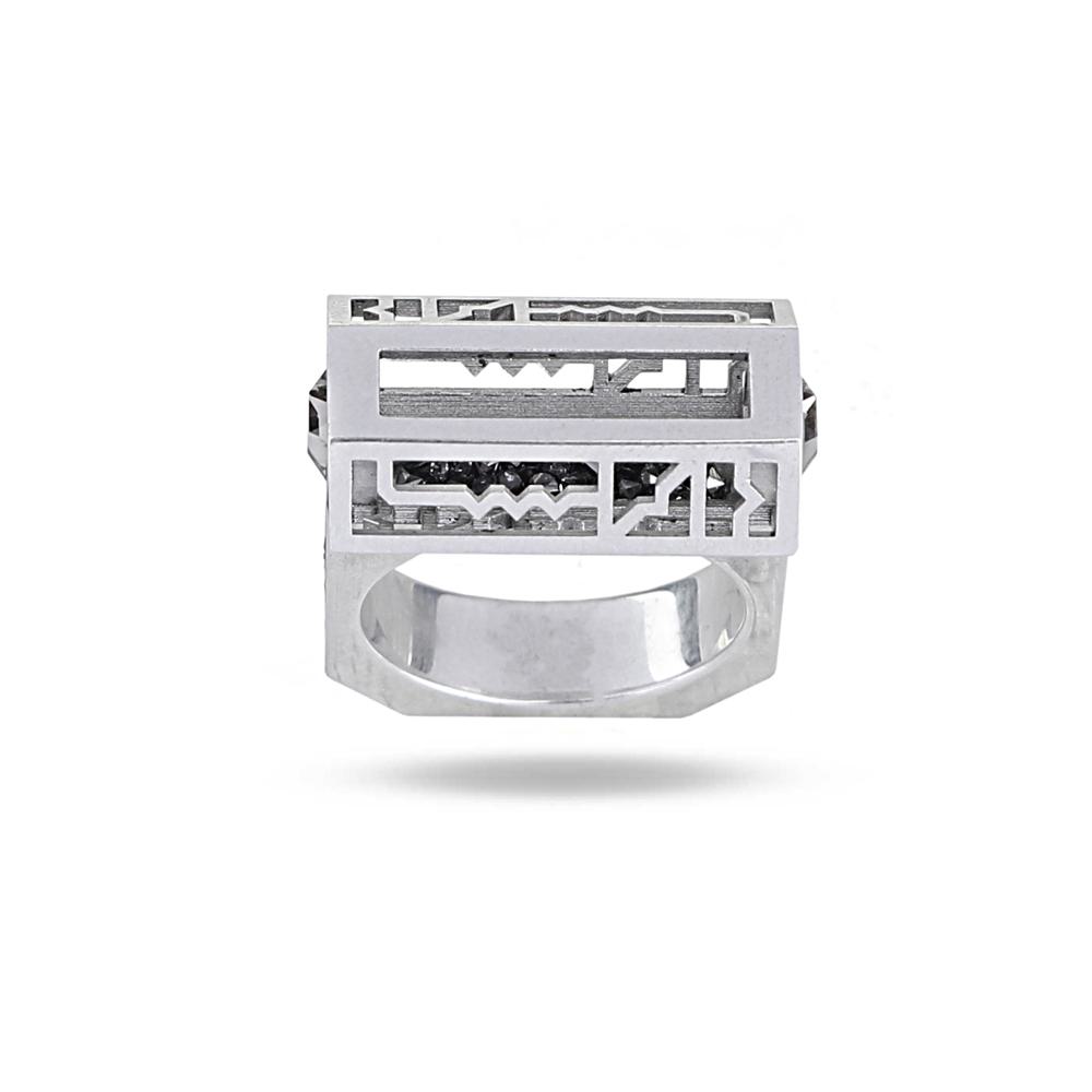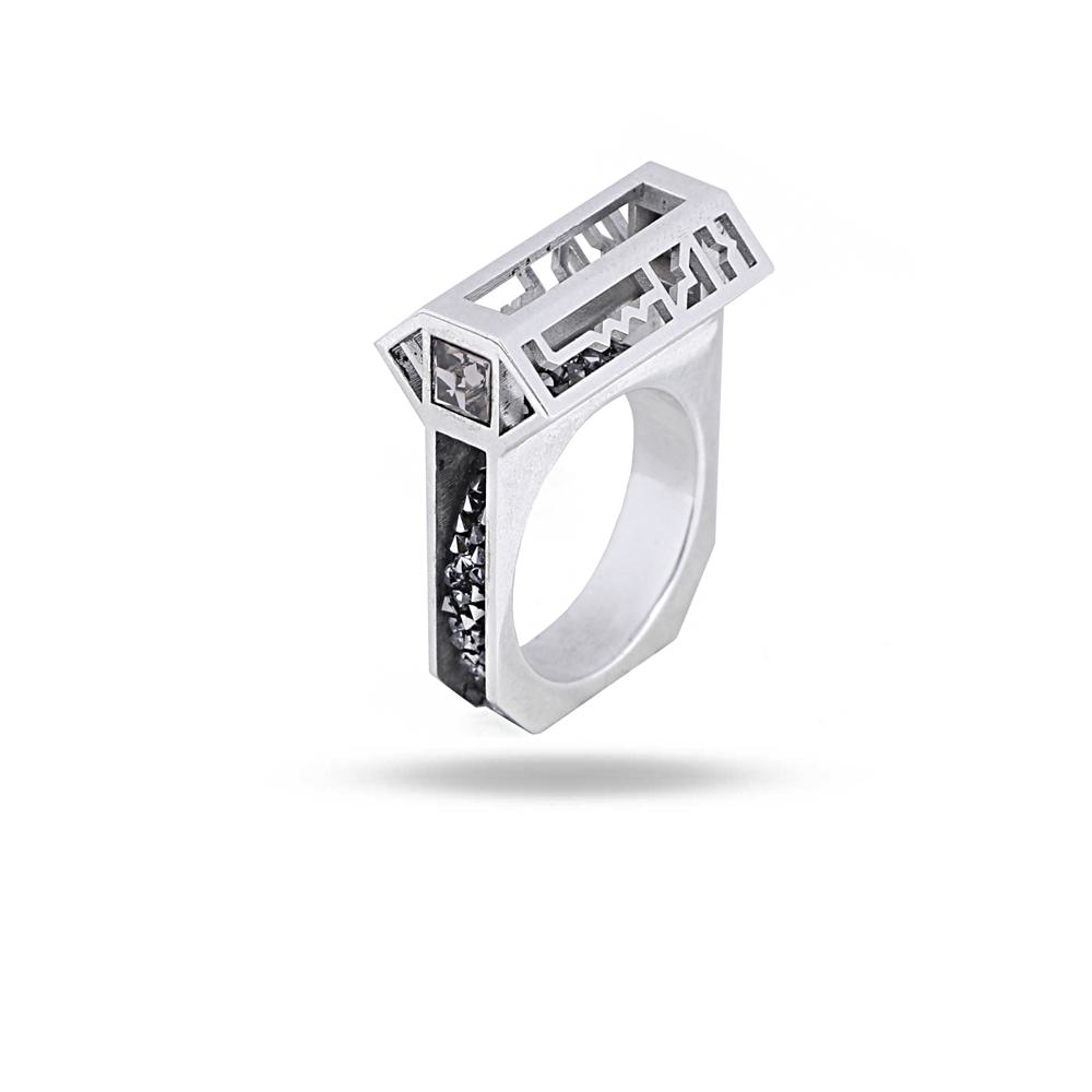 انگشتر دژ با راکس و کریستال دودی نقره سایز S