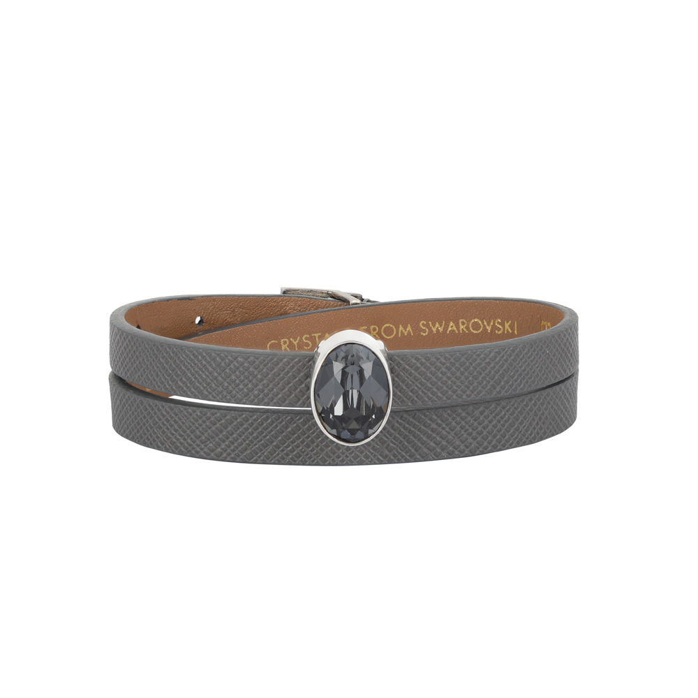 دستبند کشویی بیضی نقره با کریستال دودی سواروسکی